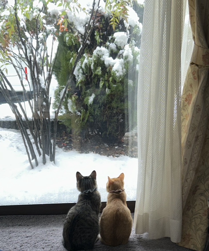 おやおや、ミントとマロンは兄妹で、初めての雪景色を眺めてるんだね。新しい年は、どんなワクワクを運んで来るかな〜