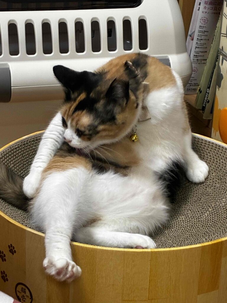ミント達の母さん、ドキンちゃんも里親さんが見つかり「6匹の子も巣立ち、ホッとした〜」とのびのびライフ。