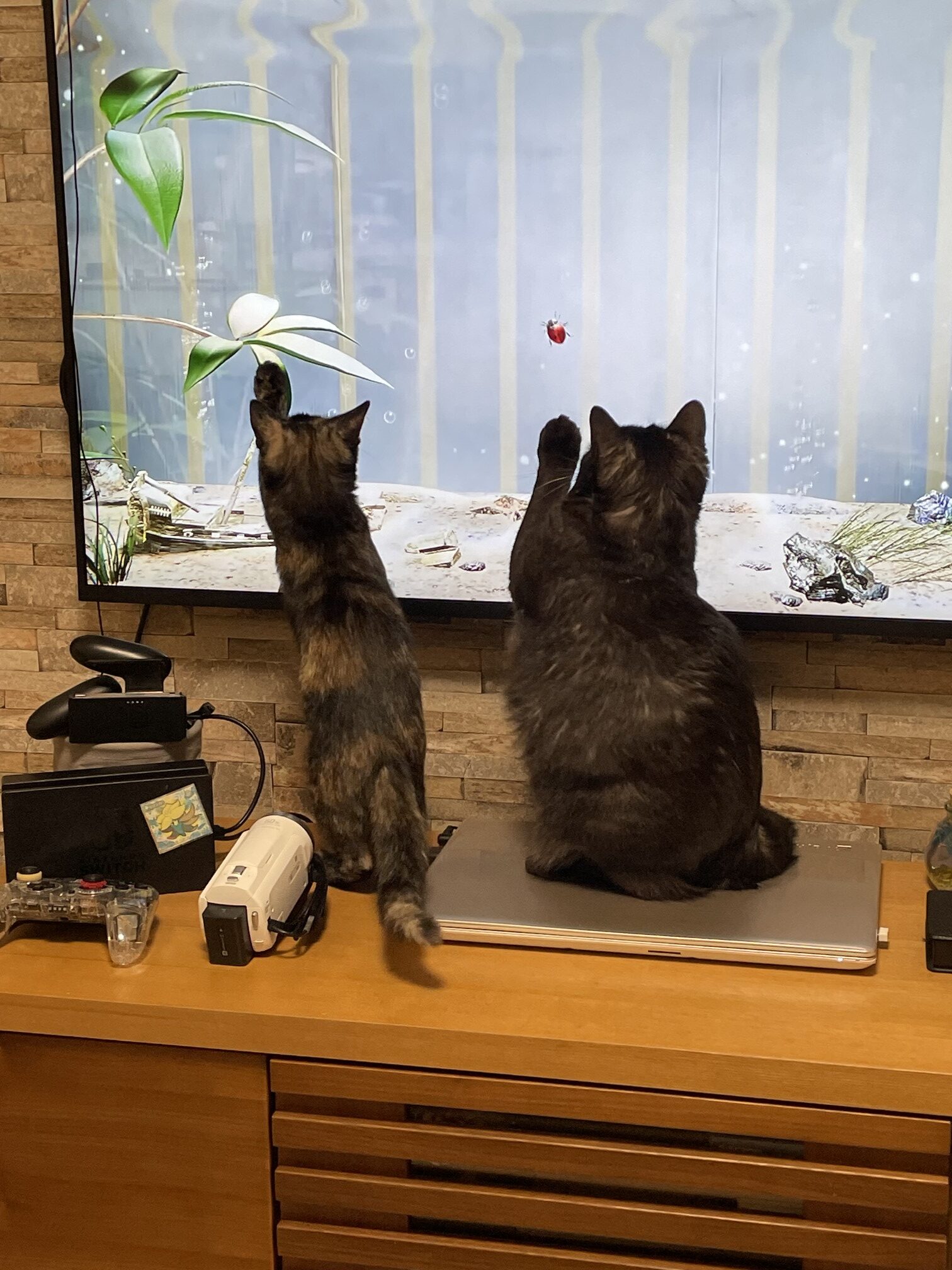 ぐりちゃんは先住猫さんとすっかり親子のようになったね!今日はシアターで探検ごっこですか?