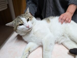 不妊予防センター最後の日、石巻の隣町、女川の港から手術に連れて来られた野良猫です。最近来たばかりだという人馴れした大きな若い猫は、誰かが猫の溜まり場に放して行ったのかもしれません。体のあちこちには、小さな傷跡が沢山…もう港には帰したくはないので、里親募集することにしました。