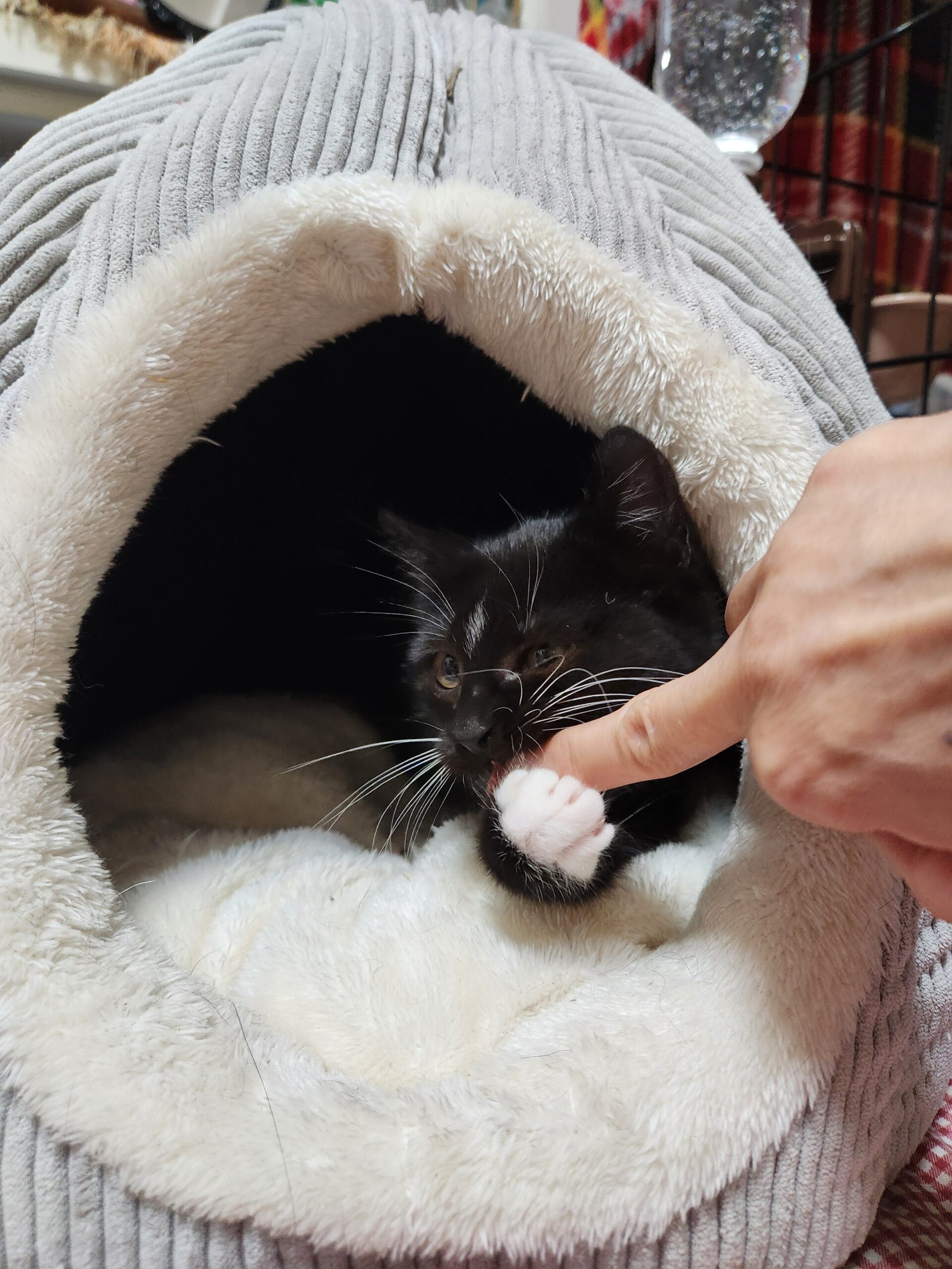 ようやく体重も1kgに近づき2月の里親探し会には参加できそうです。